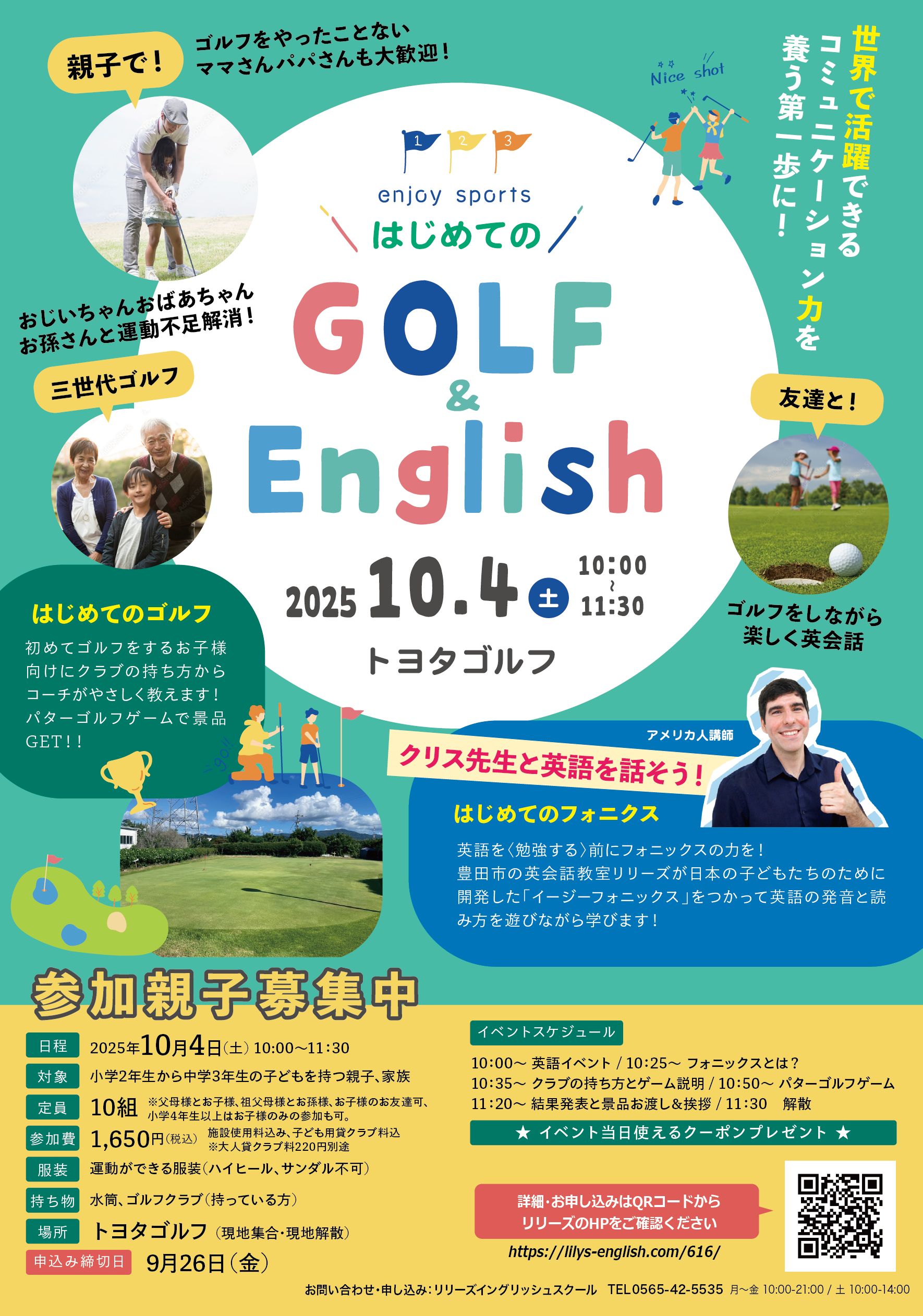 英語を学びながら、親子やお孫さんと一緒にゴルフの楽しさを体験してみませんか?