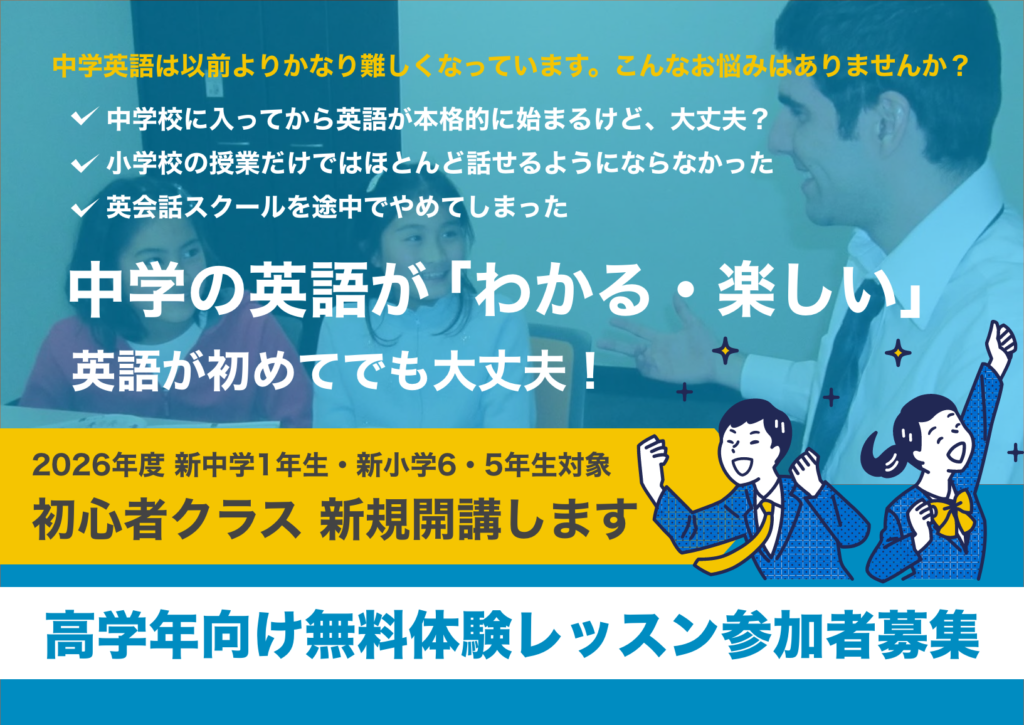 2026年度より新中学1年生・新小学6・5年生のお子様を対象とした完全初心者クラスを新たに開講いたします。