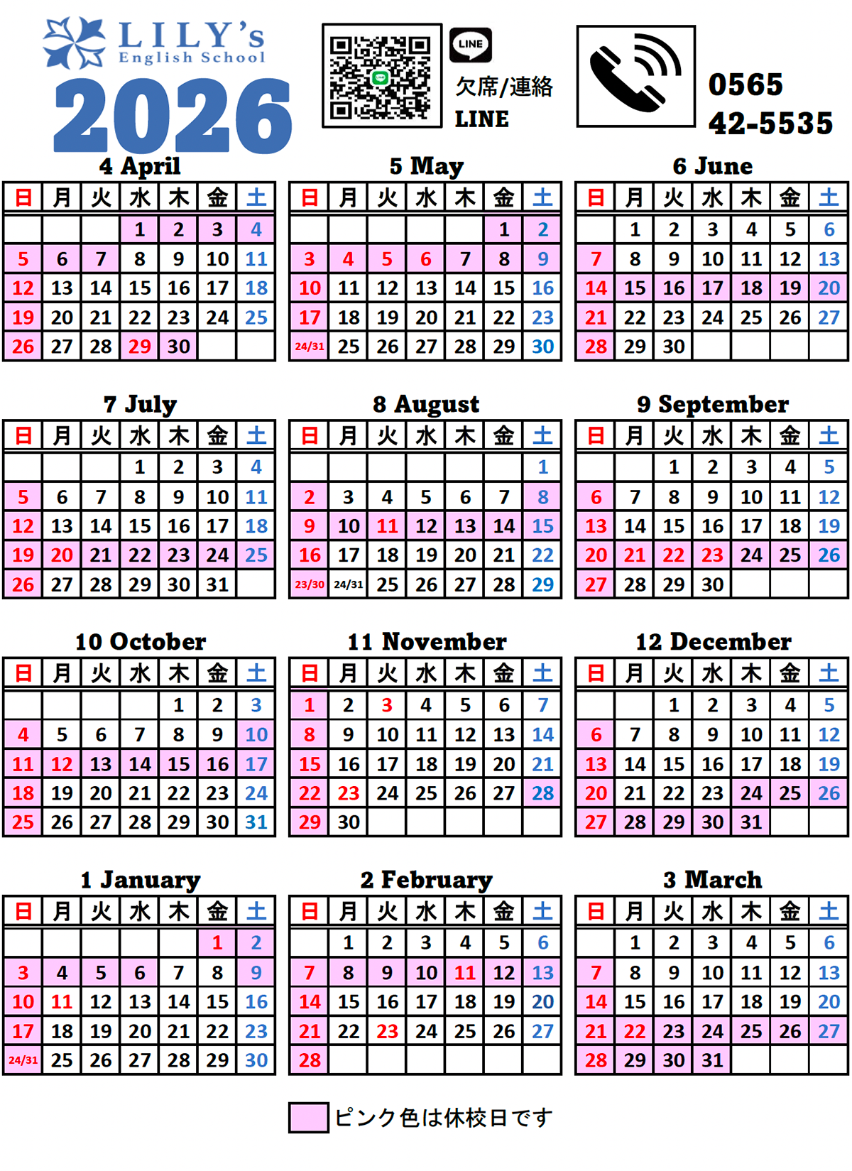 Lily’sカレンダー 2026年4月〜2027年3月