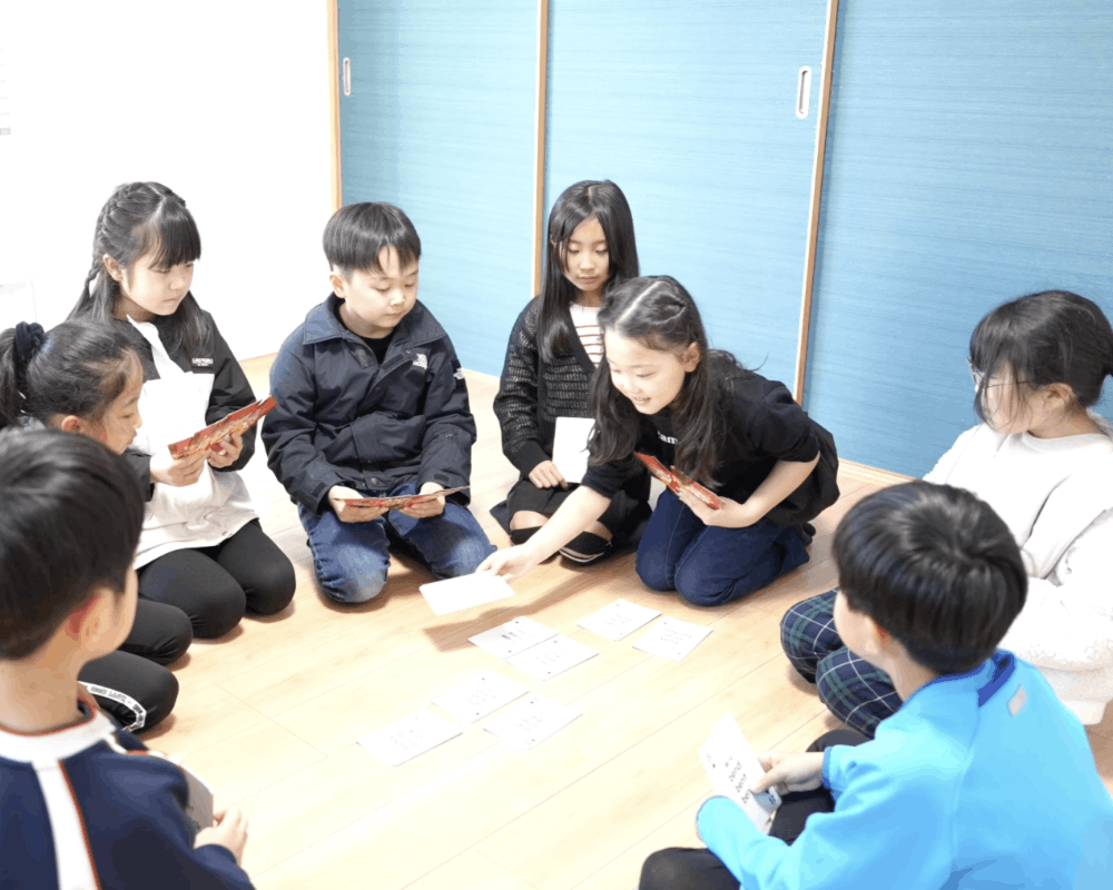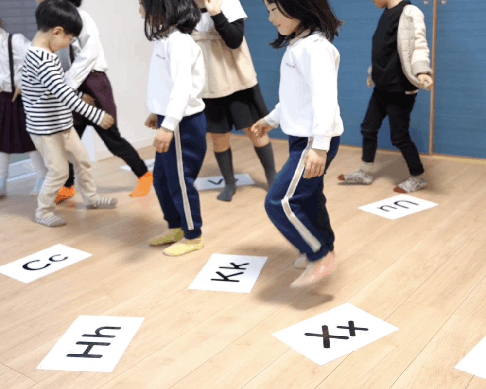 フロアーを使って思い切り体を動かしながら、楽しいアクティビティーを通してたくさん英語を話します。